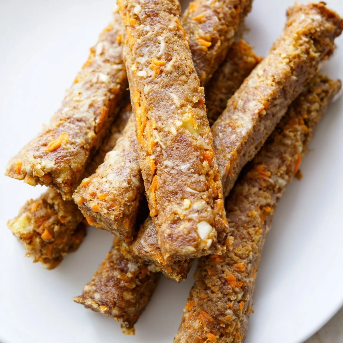 These wholesome chew sticks combine fresh grated apples and carrots with whole wheat flour and rolled oats for a nutritious, homemade dog treat. The dough comes together quickly with egg and applesauce, then rolls into stick shapes that bake until golden and firm. Leaving them to cool in the oven creates extra crunch that keeps pups occupied. Each stick contains just 55 calories, making them perfect for training or rewarding your furry friend. Store in an airtight container for up to a week or freeze for longer freshness.