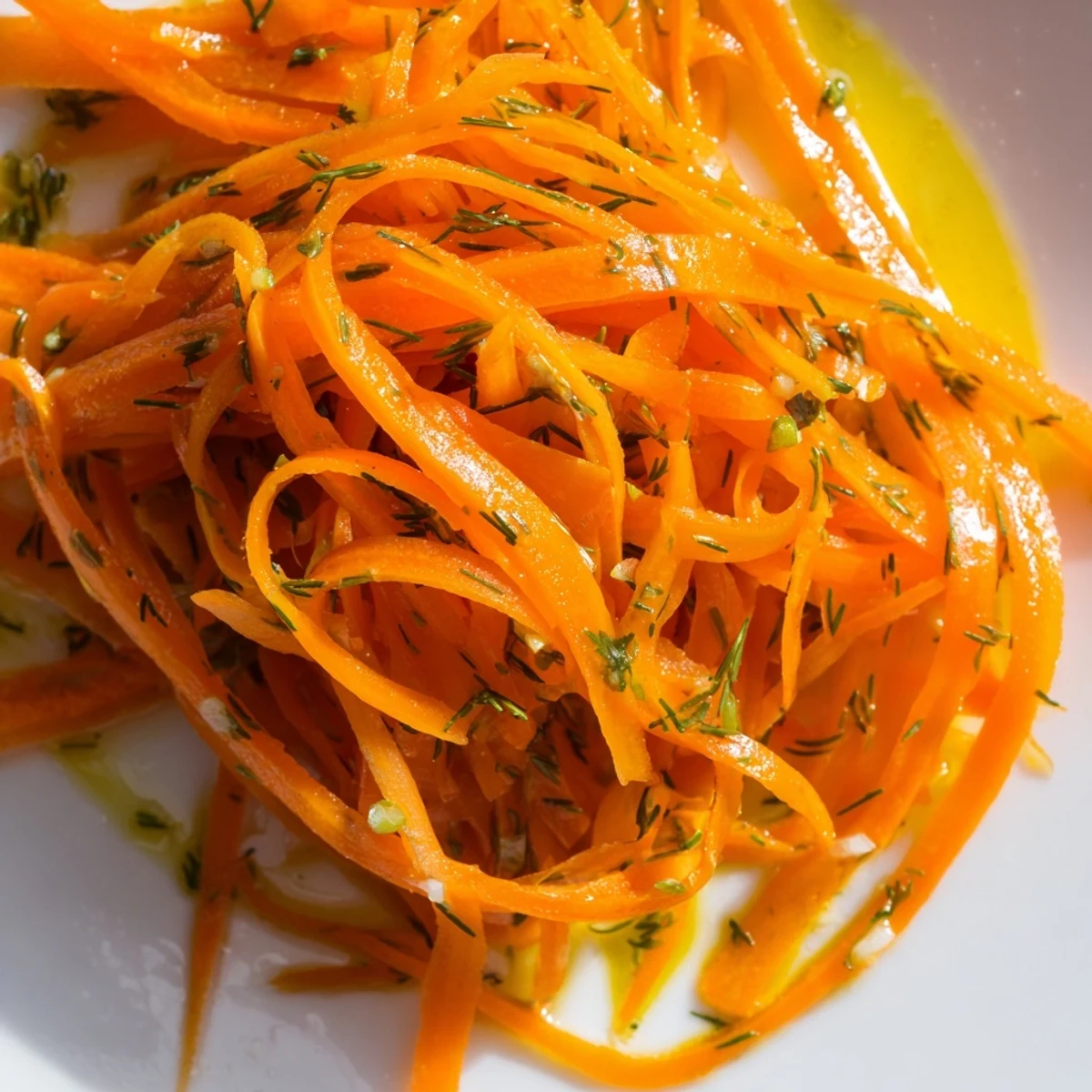 This vibrant carrot salad features crisp julienned vegetables marinated in a bright lemon-herb dressing. The tangy marinade infuses the carrots with zesty citrus notes while fresh dill adds aromatic depth. After just 15 minutes of prep and an hour of chilling, the flavors meld beautifully into a refreshing side dish that pairs wonderfully with grilled proteins or stands alone as a light lunch.